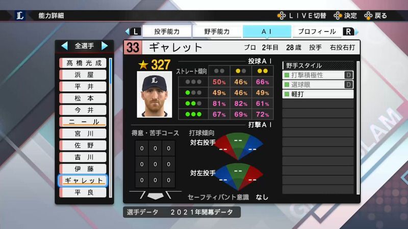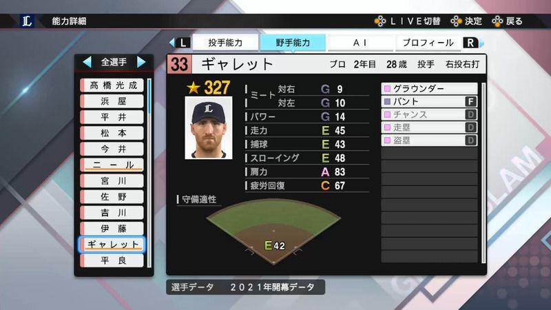 プロスピ2021 ギャレットの選手能力