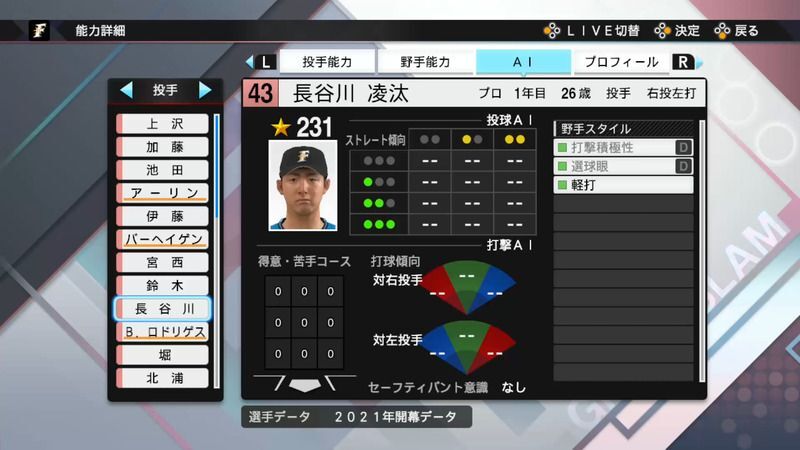 プロスピ2021(プロ野球スピリッツ2021)の長谷川 凌汰の実在選手データです。能力、基本ステータス、特殊能力などの選手データをまとめています。