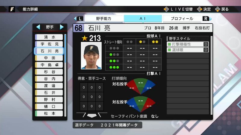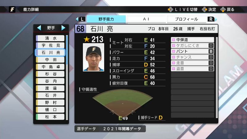 プロスピ2021 石川 亮の選手能力
