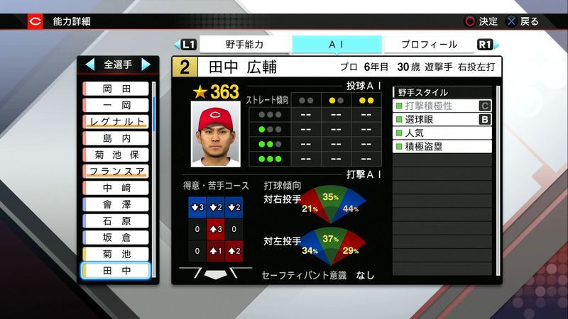 【プロスピ2019 PS4・Vita】田中 広輔の選手能力
