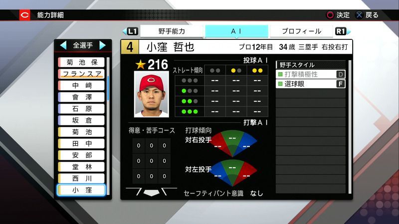 【プロスピ2019 PS4・Vita】小窪 哲也の選手能力