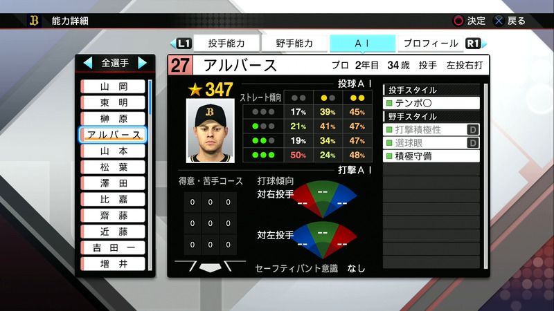 【プロスピ2019 PS4・Vita】アルバースの選手能力