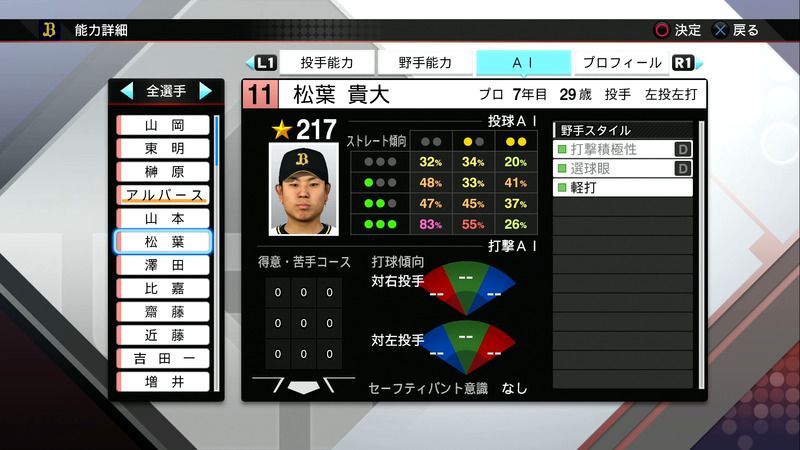 【プロスピ2019 PS4・Vita】松葉 貴大の選手能力