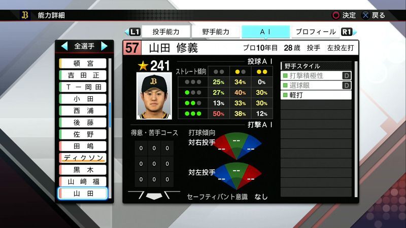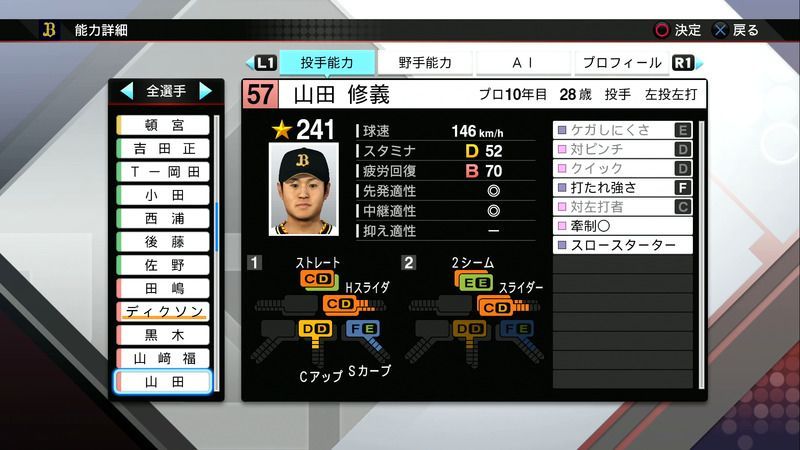 【プロスピ2019 PS4・Vita】山田 修義の選手能力