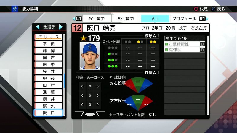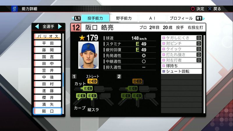 【プロスピ2019 PS4・Vita】阪口 皓亮の選手能力