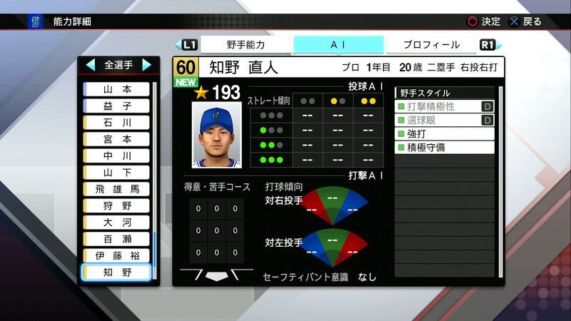 【プロスピ2019 PS4・Vita】知野 直人の選手能力