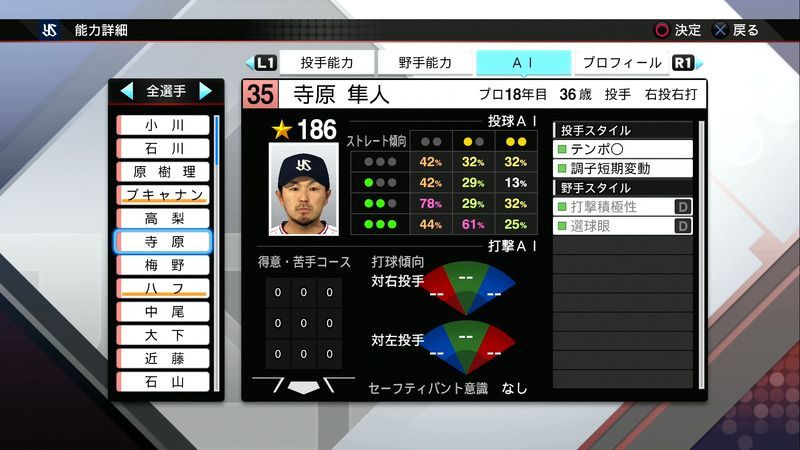 【プロスピ2019 PS4・Vita】寺原 隼人の選手能力