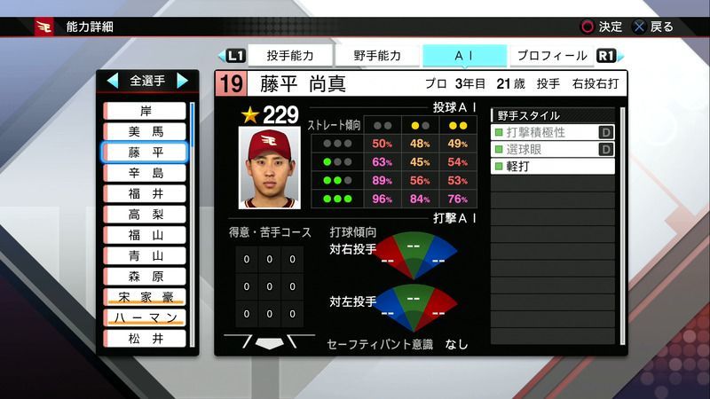 【プロスピ2019 PS4・Vita】藤平 尚真の選手能力