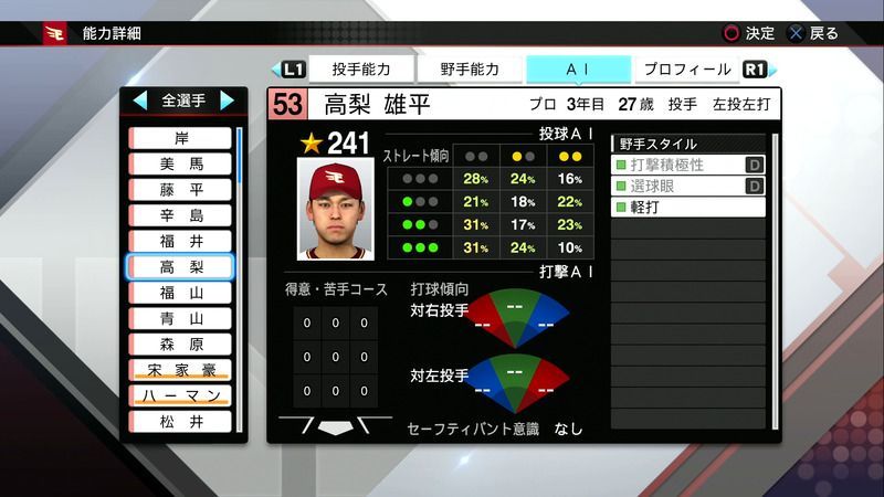 【プロスピ2019 PS4・Vita】高梨 雄平の選手能力