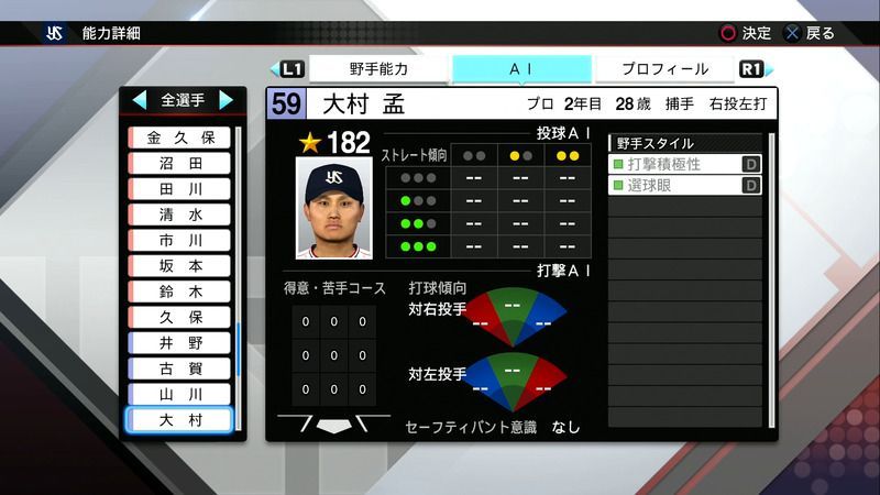 【プロスピ2019 PS4・Vita】大村 孟の選手能力