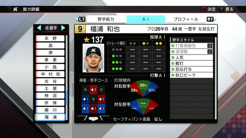 【プロスピ2019 PS4・Vita】福浦 和也の選手能力