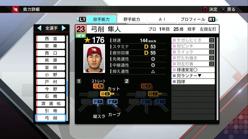 【プロスピ2019 PS4・Vita】弓削 隼人の選手能力