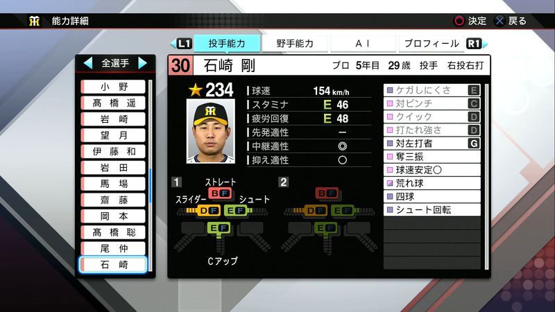 【プロスピ2019 PS4・Vita】高野 圭佑の選手能力