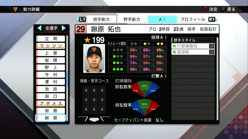 【プロスピ2019 PS4・Vita】鍬原 拓也の選手能力