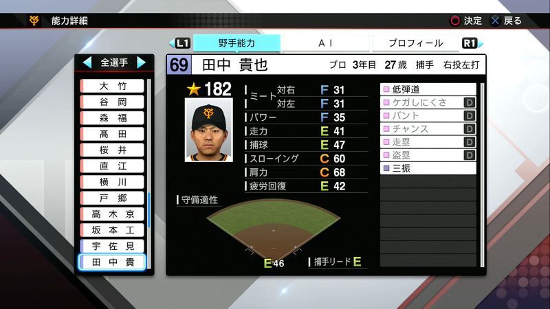 【プロスピ2019 PS4・Vita】田中 貴也の選手能力