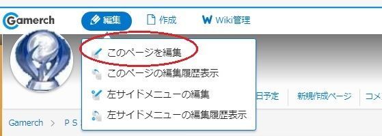 ①画面上の「編集」をクリック、下のメニューより「このページを編集」を選択