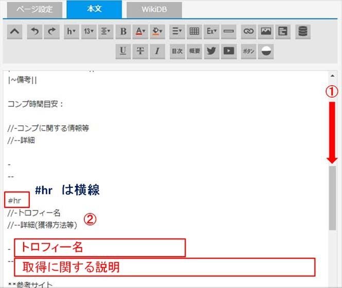 ②トロフィー名、詳細の所まで移動