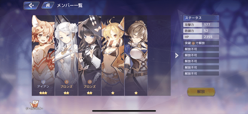 チームメンバーを所持しており、条件を満たすことによって対象のメンバーの戦力を上げられます。