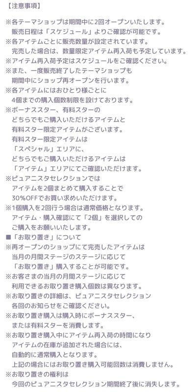 ピュアニスタセレクションは全てのショップにおいて以下の注意事項が記載されており
