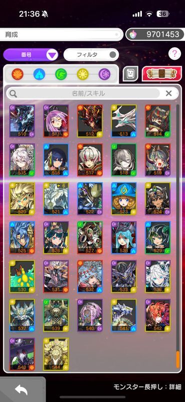 36 | 炎翼龍・ボルブラス | 火 | 左端1列を火ドロップに、右端1列を回復ドロップに変化。1ターンの間、1コンボ加算。 | |