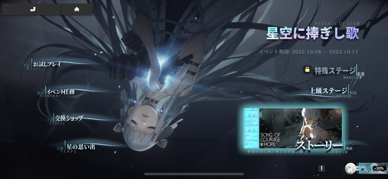 「星空に捧ぎし歌」はストーリーを進めていくイベントとなっています。