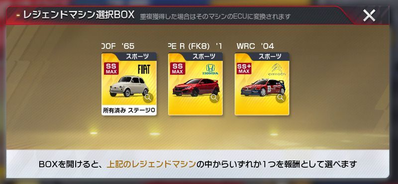 選択BOXを獲得、3台の中から希望車両を選ぶ