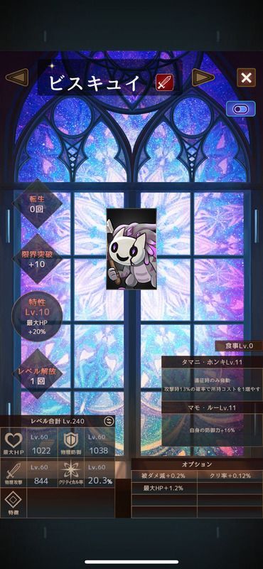 ビスキュイの強化は今のところできる限りはやりました(レベル60オプション解放10凸)