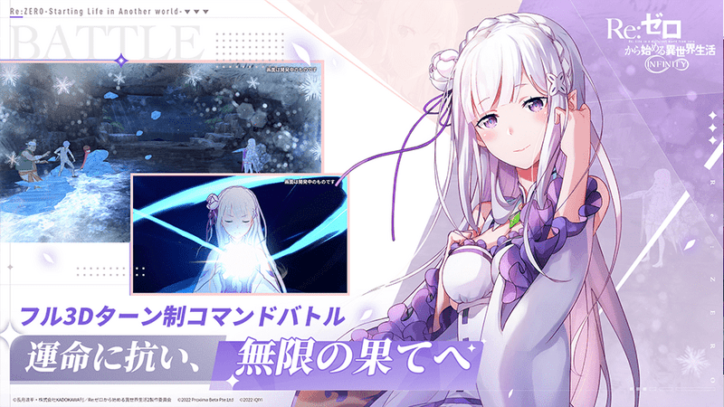 リゼフィニは人気作品「Re:ゼロから始める異世界生活」を題材にした3Dターン制コマンドバトルのスマホゲームです。