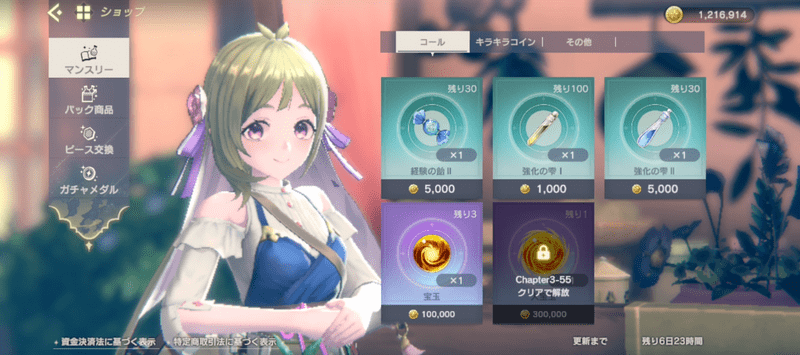 宝玉はショップでも1つ10万コールで3回まで購入する事ができます。