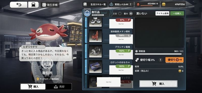 758日まえ ID:avccffw4全駅の取引所の買取で、全商品の値段と開放されていない商品の開放されるまでの目標金額が白い枠の中に next text と書かれた状態になっています。