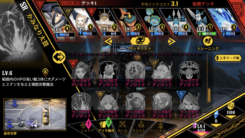 リーグが解放するごとに新しいカードが手に入るので新しいカードとデッキのカードを入れ替えてプレイすることができます。
