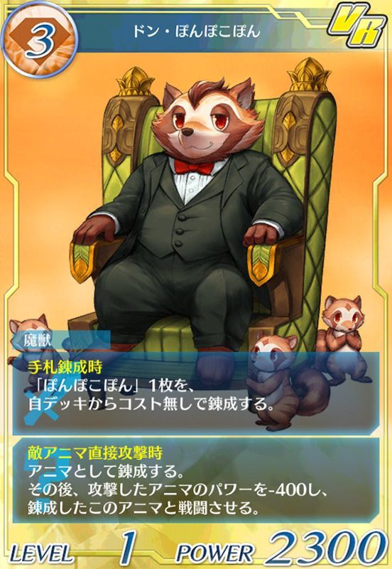 手札錬成時にぽんぽこぽんを錬成する効果を持つぽんぽこぽんの長。