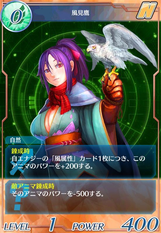 錬成時に自エナジー内の風属性カード枚数に応じてパワーが大幅に変わるアニマ。自エナジーに風属性カードが2枚あれば他の0コスアタッカーと同等のパワーになる。