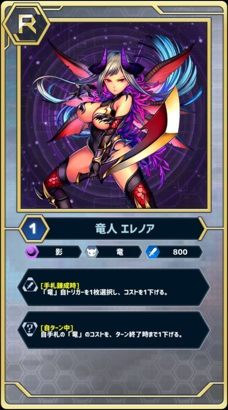 このターン、自手札のランダムな「竜」カード1枚のコストを1下げる。