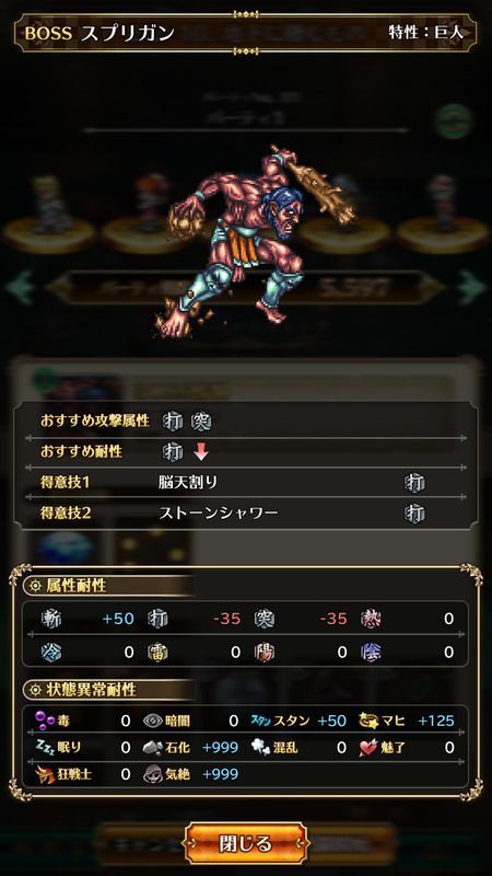 | スプリガン(BOSS) | 巨人 | 打突 | 打 |