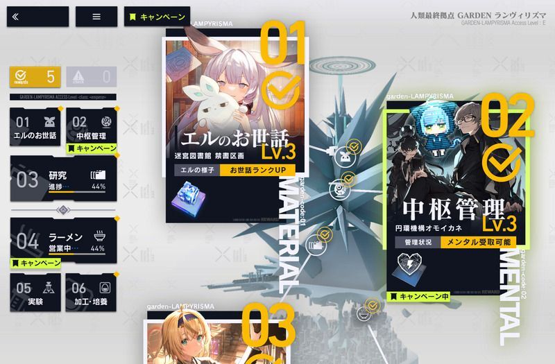 | 中枢管理 | ・メンタルを自動回復し、溜まった分を受け取れる ・FP交換はフォロワーを増やすことでFPというものを受け取るものができ、そのFPをビットインコと交換することで購買にて称号やスクリプト凸素材、アイコンなどを交換することができる。稀に記念品を交換するためのアイテムを排出する ・↳スペシャルFP交換についての詳細はこちら→リンク ・中枢管理をLvアップすると時間毎のメンタルが上昇する |