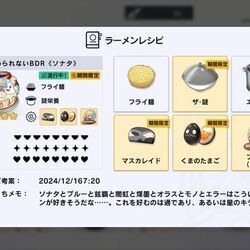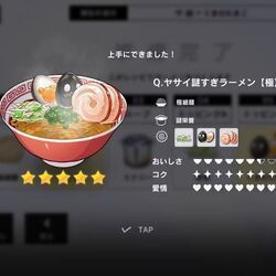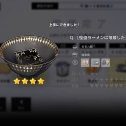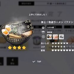 ラーメン作成時にランダムでおいしさ、コク、愛情が決定されるので、運よく作成できることを祈りましょう。