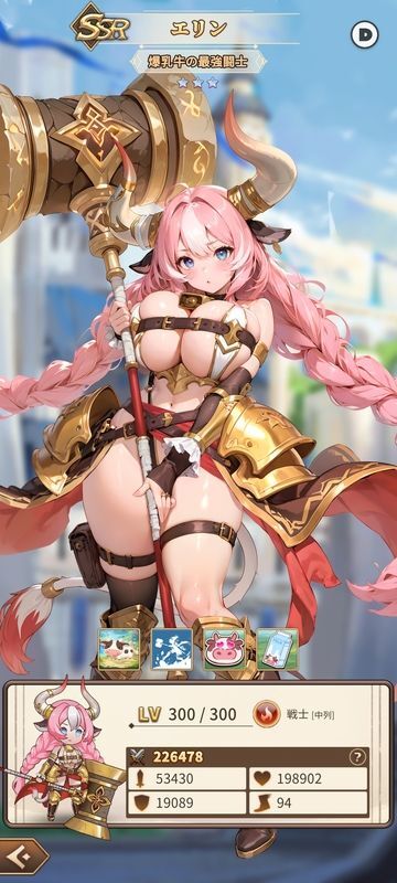 | Lv1 | [発情状態] 自身のクリティカルダメージを10%、クリティカル率を20%、速度を10%増加、2ターン持続する。全敵に100%の物理ダメージを与え、自身の数値バフ効果の数に基づいてダメージを増加(各バフ10%増加、上限100%)。ダメージを与えた後、敵の怒り値を40%減少。 [牧牛状態] 牛乳を飲む、攻撃力100%分のHPを回復し「カルシウム」10層を獲得。 |