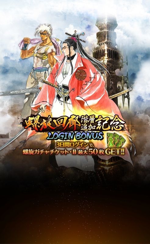階層追加記念のログインボーナスでは早速螺旋ガチャチケットⅡがプレゼントされるようです。