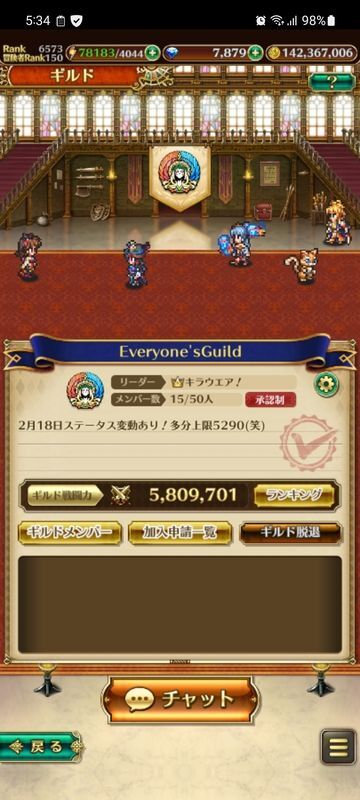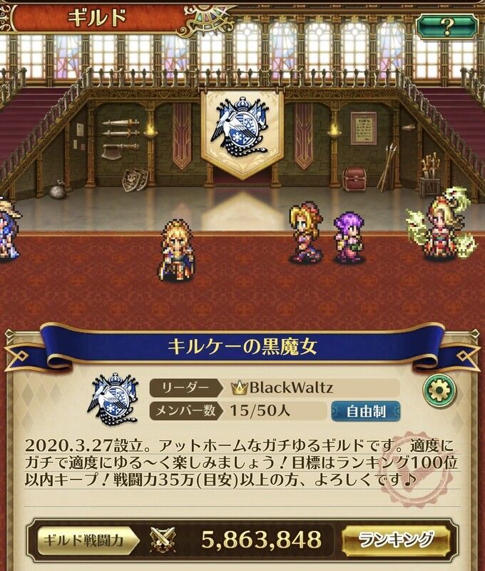 紹介【チャット好きのギルド♪戦闘力360000以上でチャットに参加する方お待ちしてます♥️ポルカは出禁♥️放置は3日でサヨウナラ♥️ロマサガ好き、おしゃべり好き、周回好き、配布ジュエル好きの紳士淑女大歓迎!】