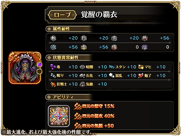 「覚醒の覇衣」は進化するごとにアビリティの性能が上昇!