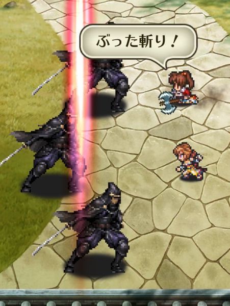 | 属性:斬 威力:D コスト:16 種類:攻撃 覚醒段階:◇◇◇/覚醒素材:黒 攻撃/近/直接/敵単体 (斬) 斧でランダムな敵に攻撃する(2-5回) 反撃を受けると中断する(攻撃時アビリティは初撃のみ発動) 攻撃するたび 自身のBPを回復する(+1) |