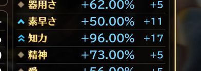 | 器用さ | +62%+5 | 愛 | +56%+5 |