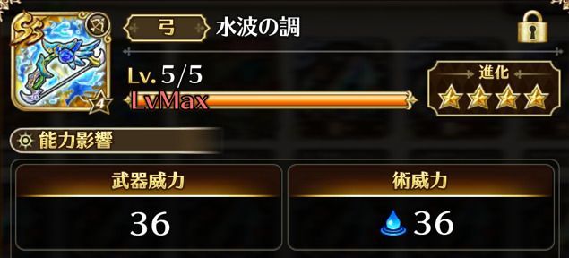 術威力が既存のS武器より6高く、知力も+4される水波の調と他の武器では、大きく評価を変えるでしょう。