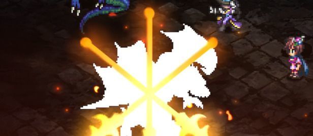 | 属性:熱 威力:E コスト:5 種類:攻撃 覚醒段階:◇/覚醒素材:赤 攻撃/遠/間接/敵全体 (熱) 火術で全体攻撃する | |