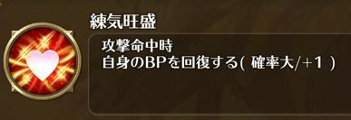 | 攻撃命中時 自身のBPを回復する(確率大/+1) | |
