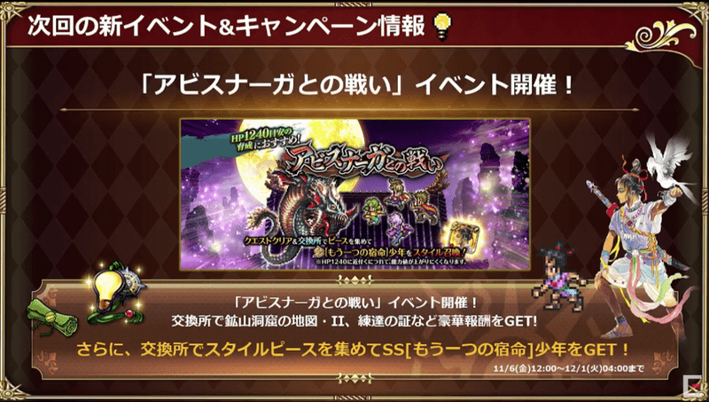 アイスソードが2本手に入ってしまう世界観の矛盾や、強い武器がたくさん手に入ってしまうゲームのバランス崩壊を防ぎつつ復刻などの開催を予定