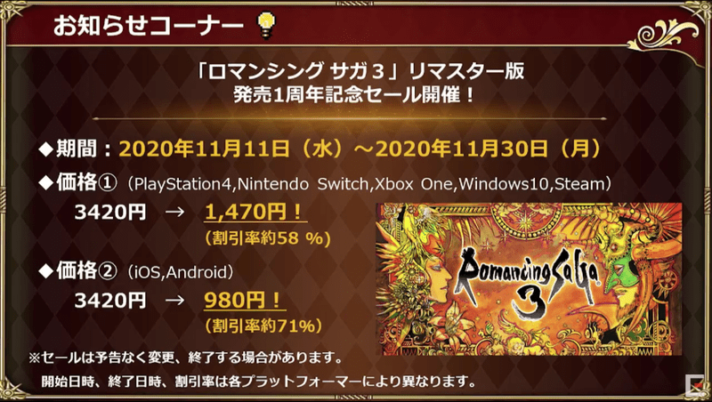 ▼ロマサガ3リマスターが期間限定タイムセール!