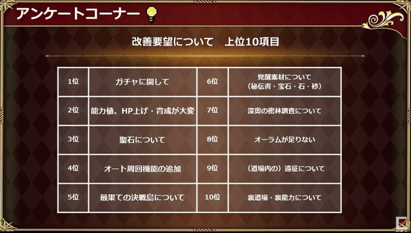 | A:年明け以降、1回で10枚消費し、10回分の報酬が獲得できるようなアップデートを検討中 また、合わせて報酬のリニューアルも検討 |