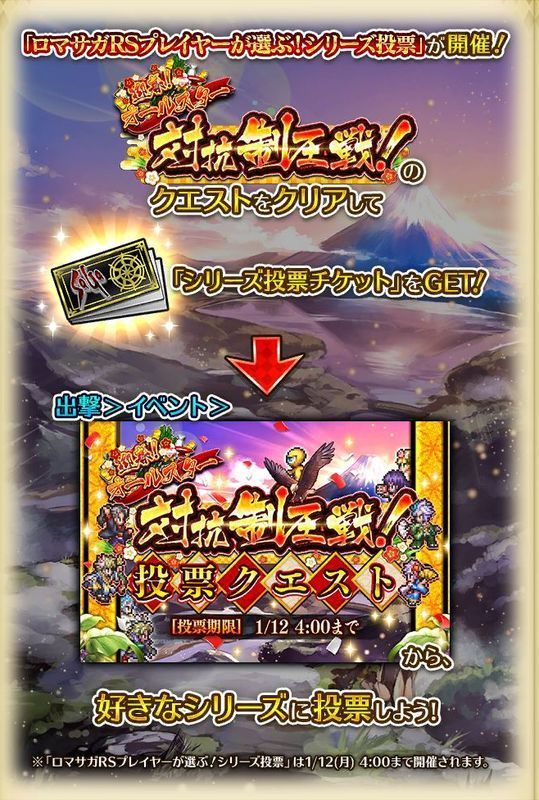 シリーズ投票チケットを使用し、「投票クエスト」から自分の好きなサガシリーズに投票しましょう。